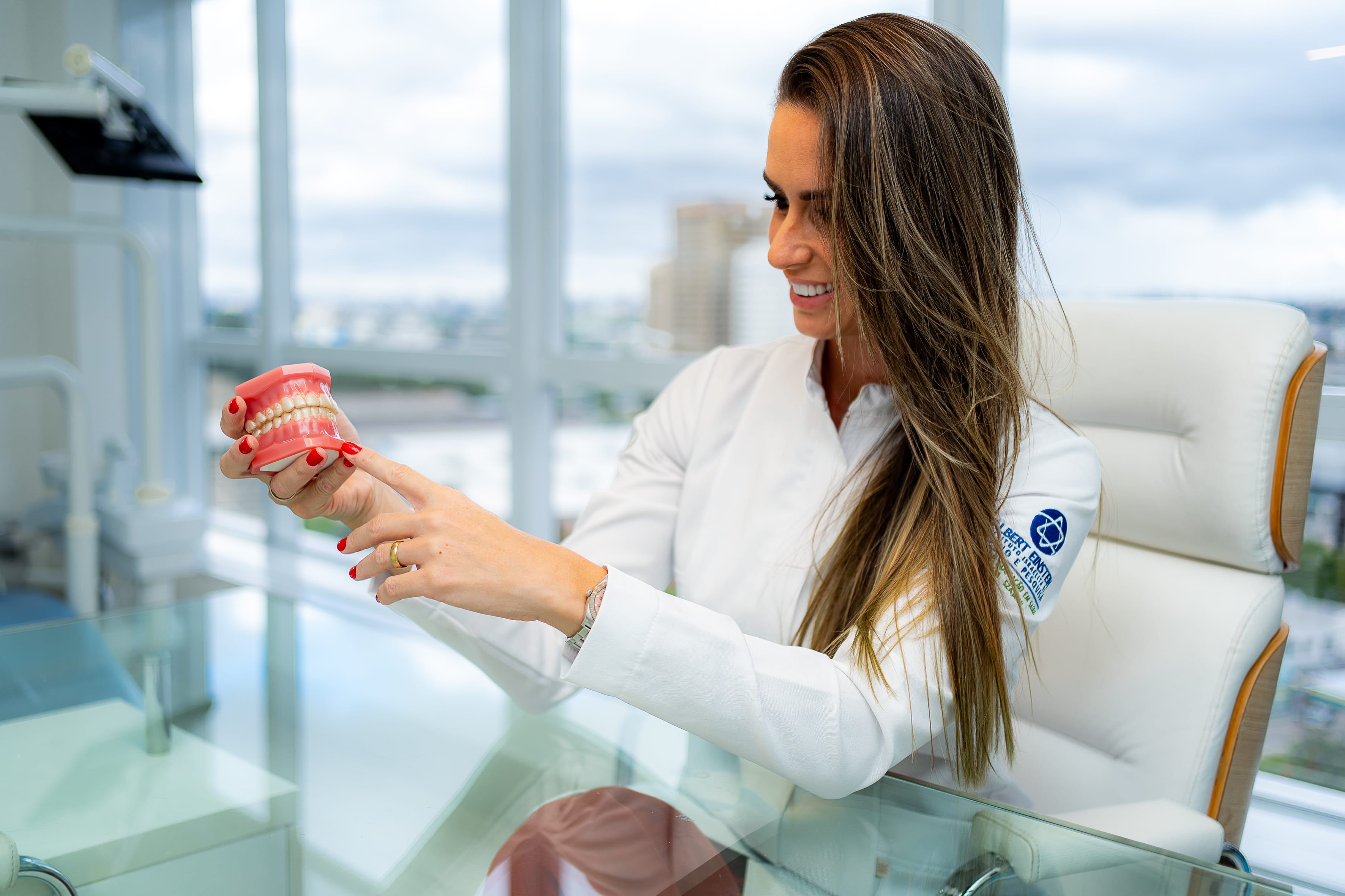 Com formação sólida e constante aperfeiçoamento, dedica-se à odontologia estética, ajudando seus pacientes a recuperarem a confiança e o brilho no olhar. Em seu consultório, localizado em Alphaville – Barueri, oferece uma experiência acolhedora e personalizada, onde cada detalhe é pensado com carinho para realçar a beleza natural de cada sorriso.